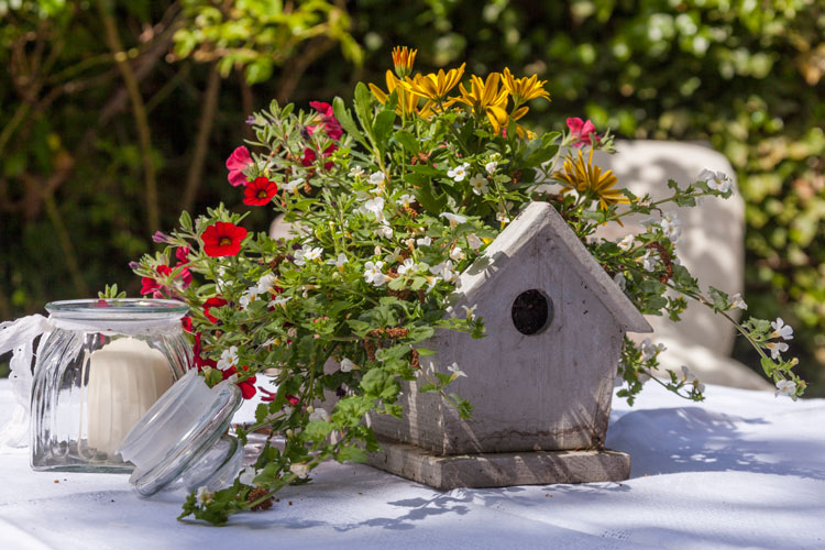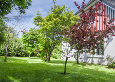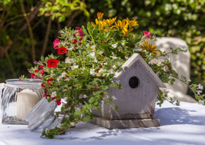Nutzen Sie gern unseren großen, ruhigen Blumengarten mit Sitzplätzen, Liegen und Grillmöglichkeiten für Ihre Auszeit.