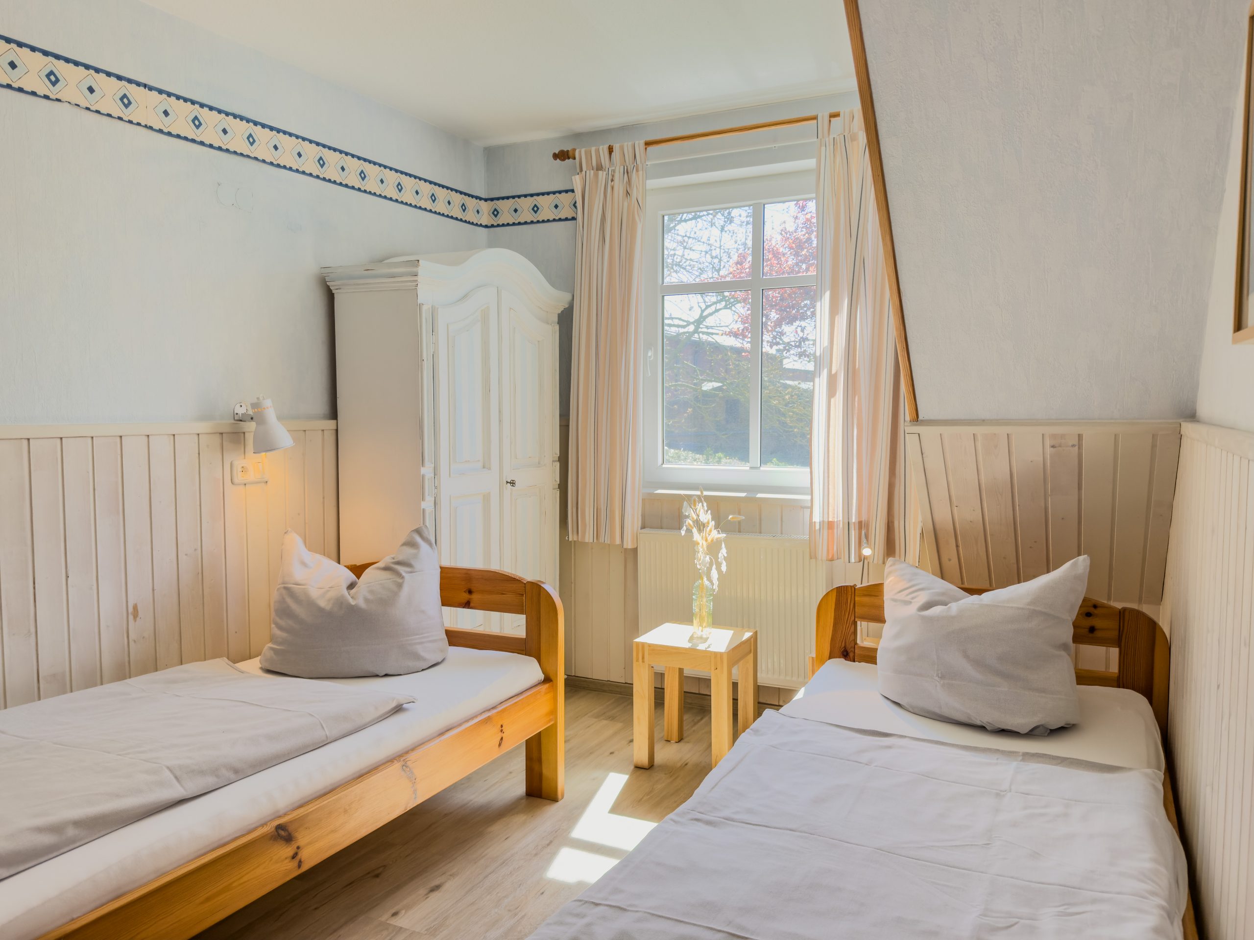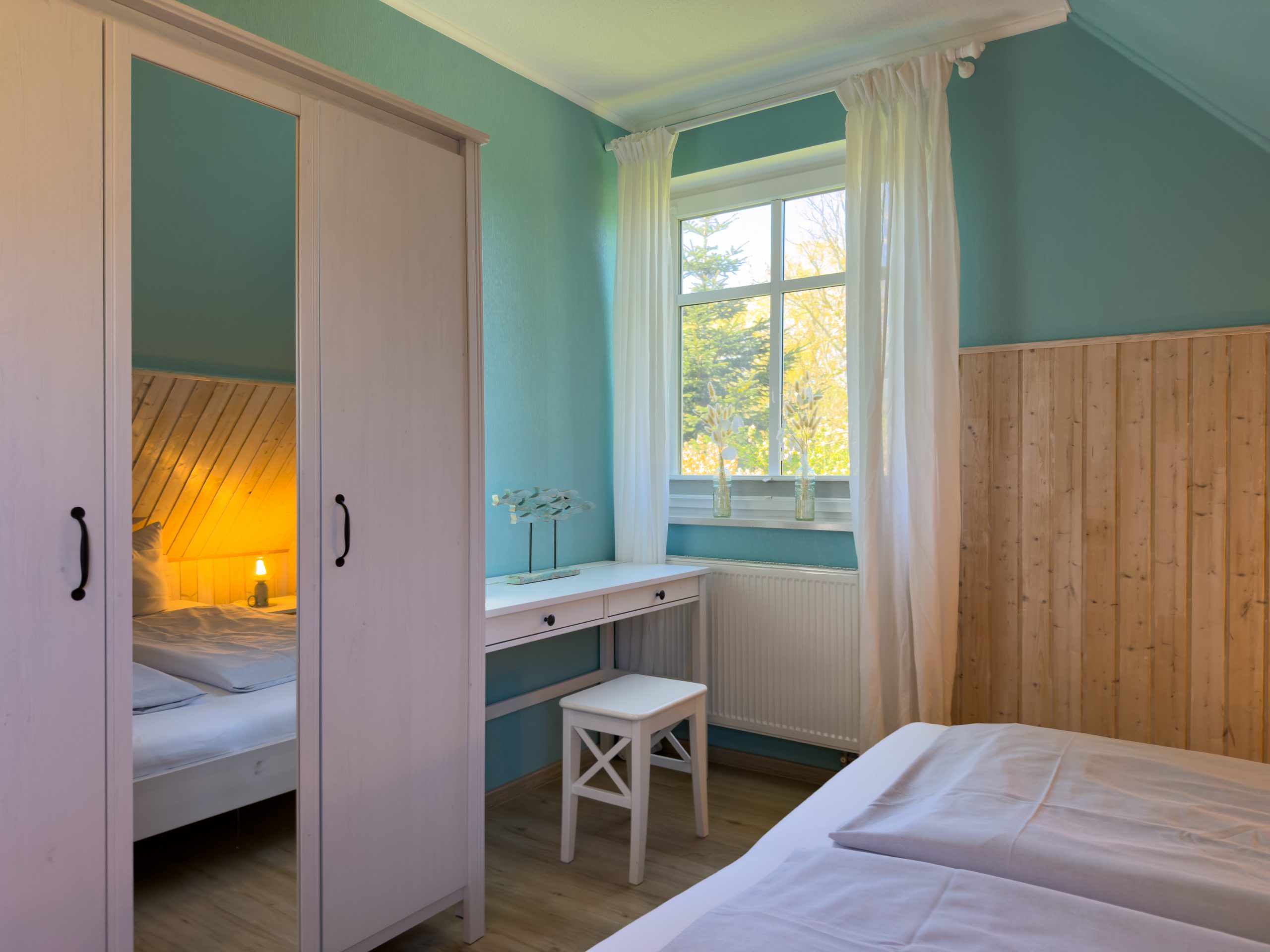 Schlafzimmer 2: 2 Einzelbetten, 90×200, Nachttische, mit Leselampen, Kleiderablage, geräumiger Kleiderschrank