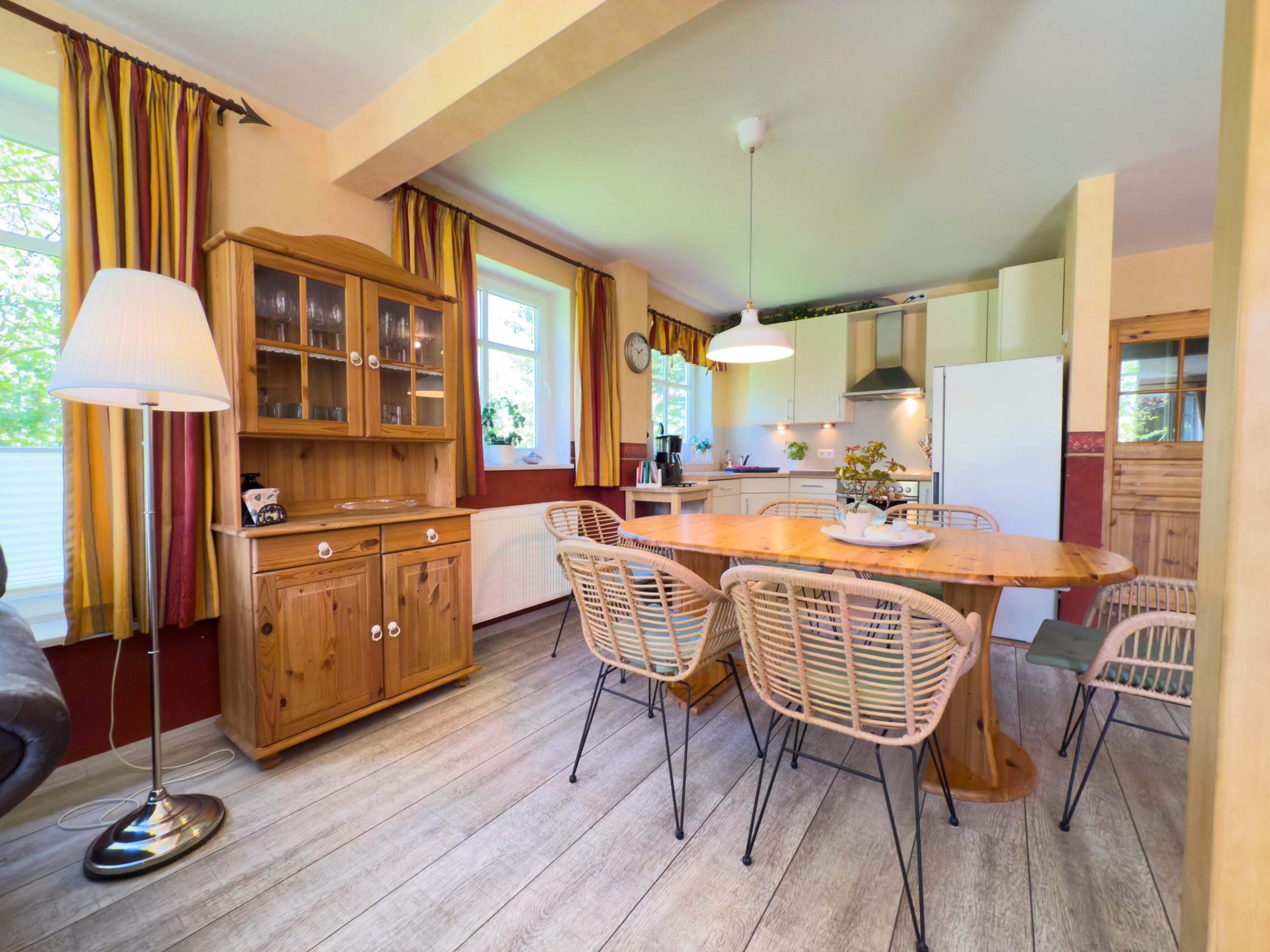 Großer Essplatz für 8 Personen, Vitrine mit Weingläser, Trinkgläser, Schnaps- und Biergläser