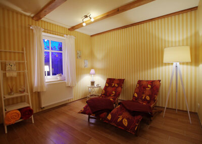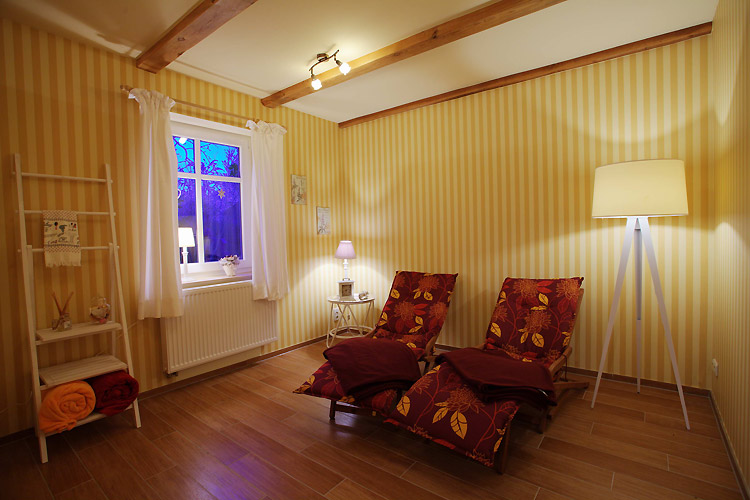 Im Garten befindet sich unsere Sauna mit Ruheraum, Handtüchern und Bademäntel (gegen Gebühr).